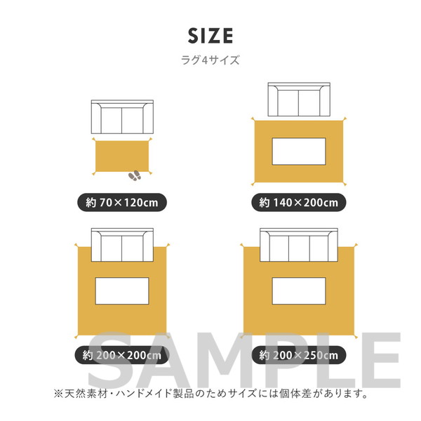 インドの職人が一枚ずつ丁寧に手織りした、ウール100%のギャッベラグ。手仕事ならではの素朴な風合いと、少しずつ表情の異なる柄が、空間にやさしい個性を添えてくれます。羊毛が空気を含むことで、夏はさらっと、冬は床からの冷えをやわらかく和らげ、一年を通して心地よく使えるのが魅力。弾力があり、くつろぎ時間にも安心して使えます。リビングや寝室など、ナチュラルなインテリアにやさしくなじみ、毎日の暮らしを穏やかに整えてくれるラグです。