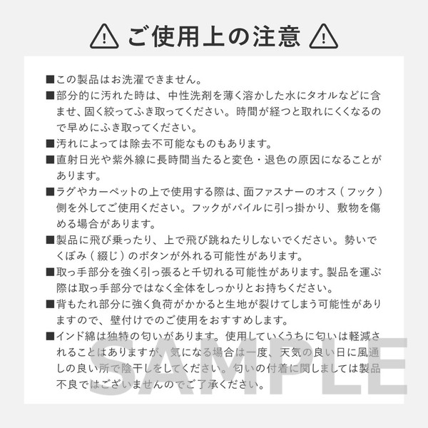 | 注意事項 | ※ハンドメイド製品のためサイズに多少の誤差があります。 ※カバーの取り外しはできません。 |