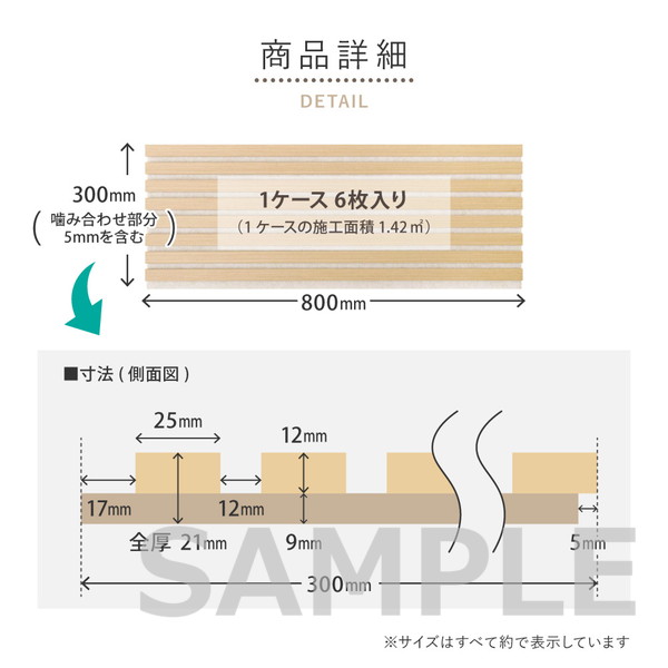 サイズ | 約800×300mm (噛み合わせ幅約5mmを含む) 厚み約21mm |