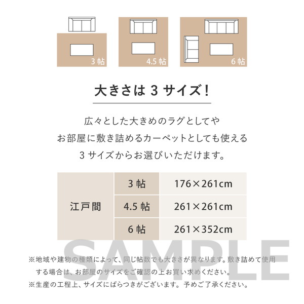 シェニールカーペット ランス 約261×352cm 江戸間6帖