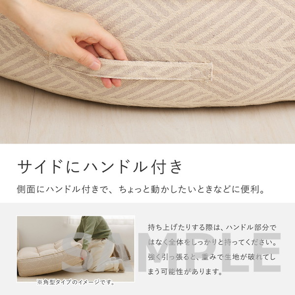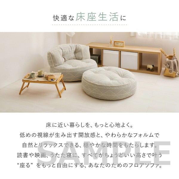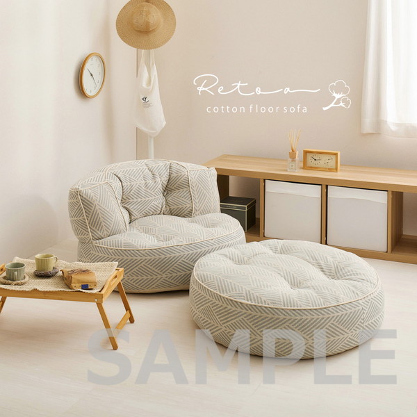 インド綿100%のやさしい風合いのフロアソファ『レトア』。空間を広くみせるロースタイルに、やわらかい雰囲気でくつろぎ感を演出します。円形ソファの丸みのある特徴的なフォルムは、自然と目を引くアクセントになり、シンプルなお部屋でも一気に洗練された印象に。
