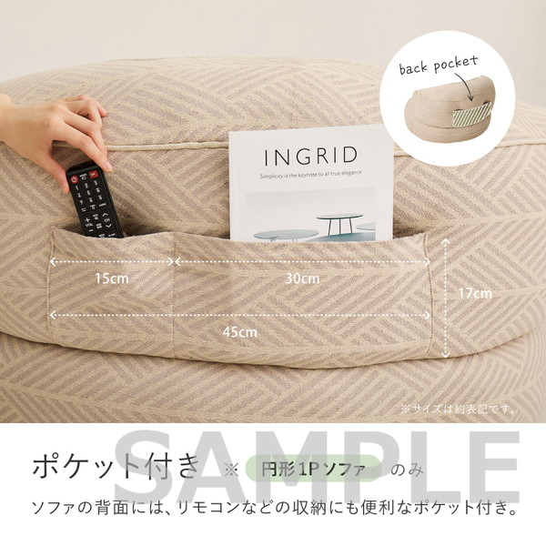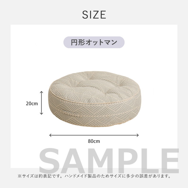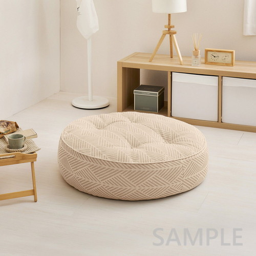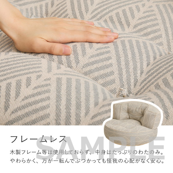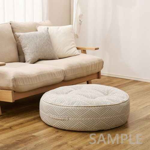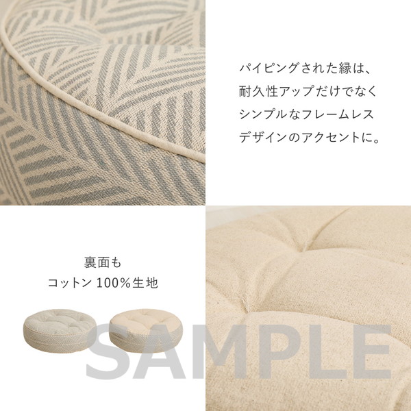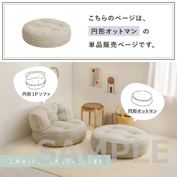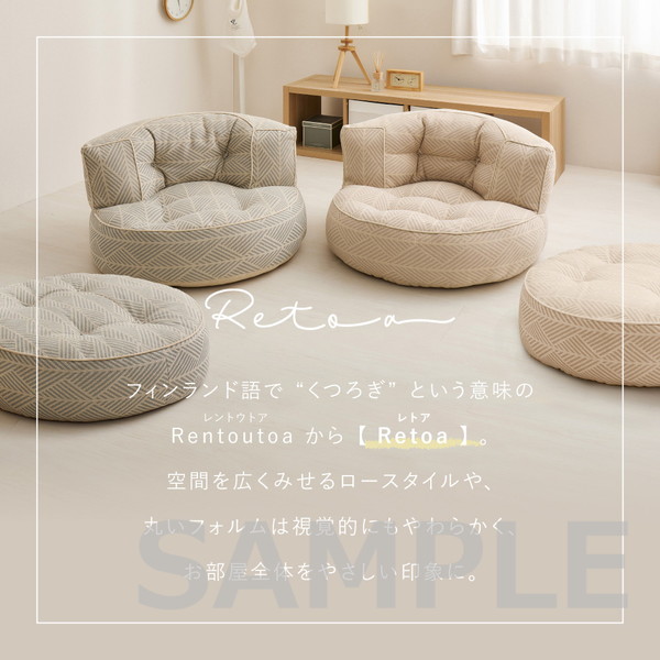インド綿100%のやさしい風合いのフロアソファ『レトア』。空間を広くみせるロースタイルに、やわらかい雰囲気でくつろぎ感を演出します。円形ソファの丸みのある特徴的なフォルムは、自然と目を引くアクセントになり、シンプルなお部屋でも一気に洗練された印象に。