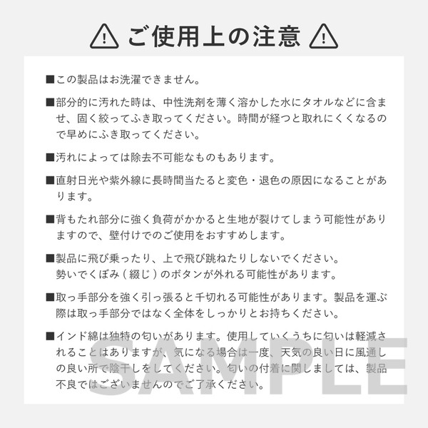 | 注意事項 | ※ハンドメイド製品のためサイズに多少の誤差があります。 ※カバーの取り外しはできません。 |