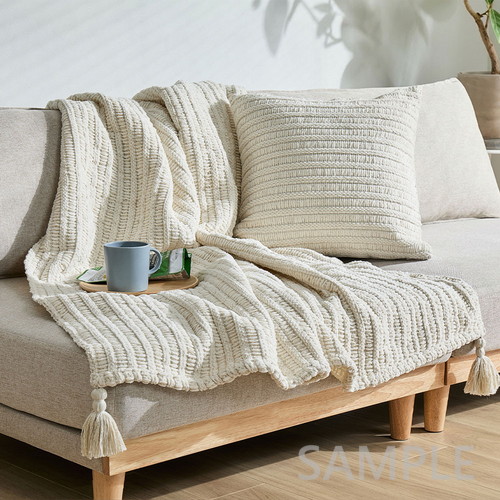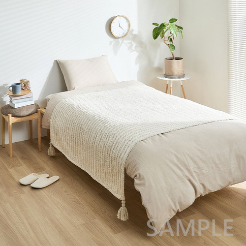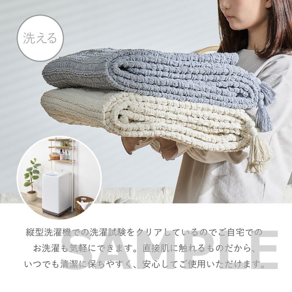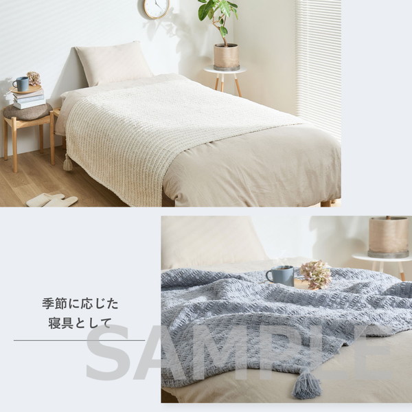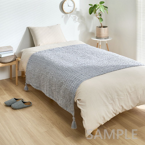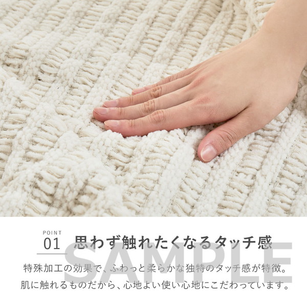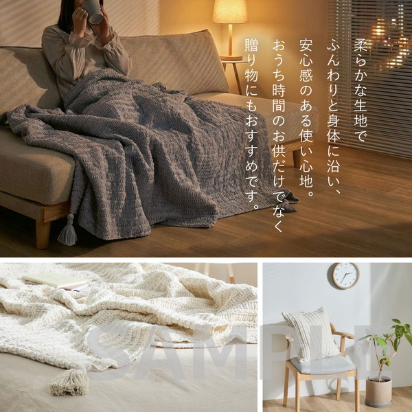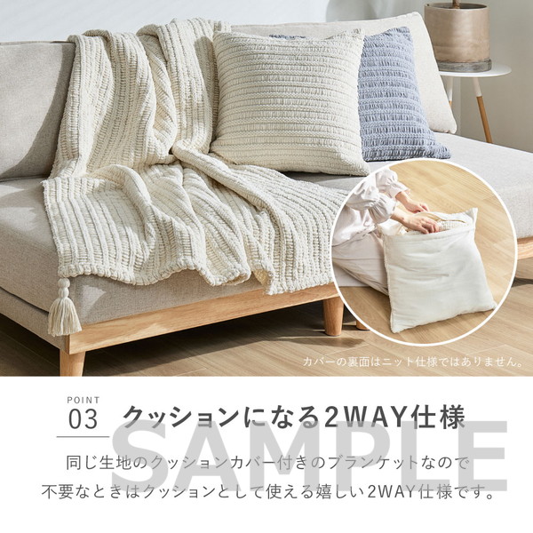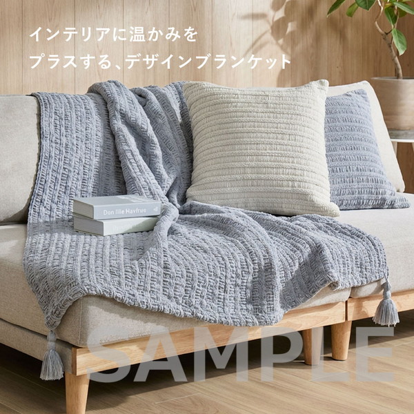特殊加工を施した糸を丁寧に編み上げた、ふっくら柔らかなニットブランケット。厚みがありながら軽やかで、身体に自然に沿う心地よいタッチ感。肌に触れるものだからこそ、思わず触れたくなるやさしい風合いにこだわっています。同色のクッションカバー付きで、使わない時はコンパクトに収納できる2WAY仕様。リビングではブランケットとして、不要な時はクッションとして、おうち時間のリラックスアイテムにぴったり。縦型洗濯機で洗えるため日常使いしやすく、低ホルムで安心感も備えています。インテリアに温かみを添えたい方や、贈り物にもおすすめの一枚です。