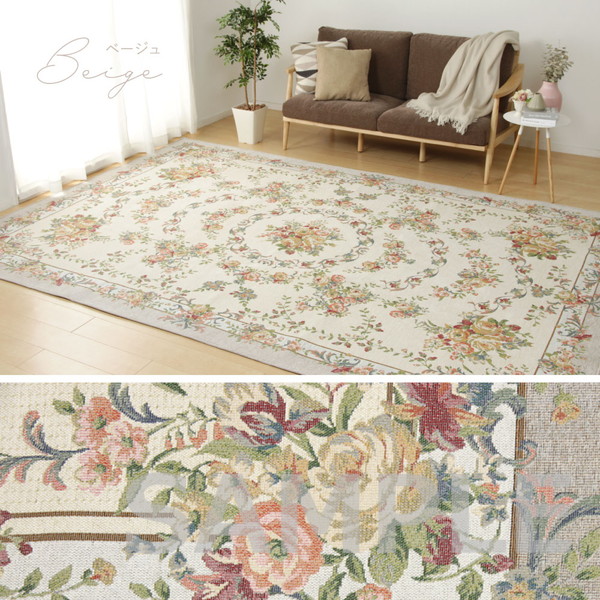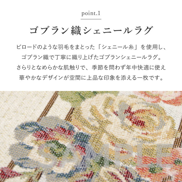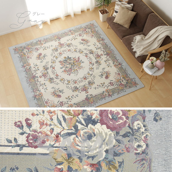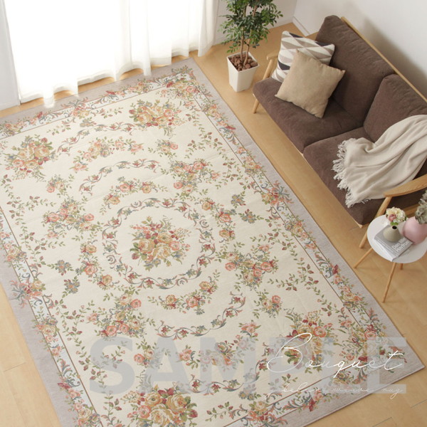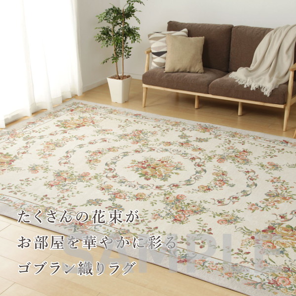 はっ水加工 ゴブランシェニールラグ ブーケ(滑り止め付き) 約200×250cm