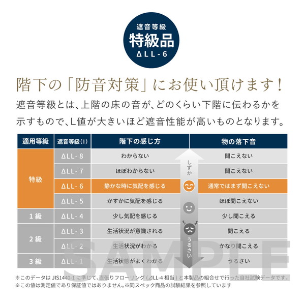 い草ならではの吸湿性で夏はさらっと、断熱性により冬の冷気もやわらかく軽減。クッション性があり、足音や生活音の響きを抑えたい集合住宅の防音対策にも役立ちます。