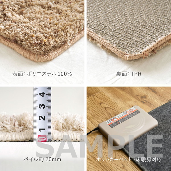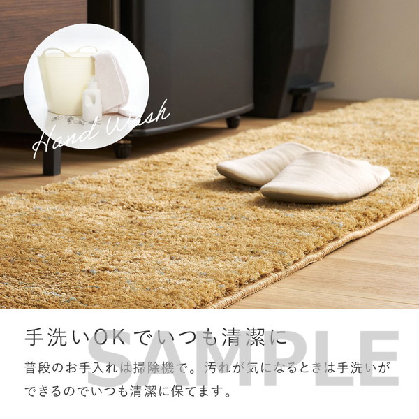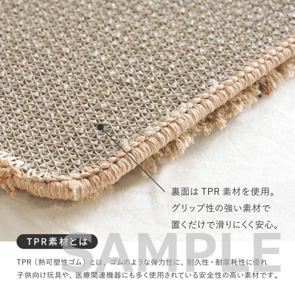汚れが気になった際は手洗いが可能。裏面にはグリップ性の高いTPR素材を使用し、置くだけでも滑りにくく安心です。ホットカーペット・床暖房にも対応し、日常のさまざまなシーンで使いやすい一枚です。