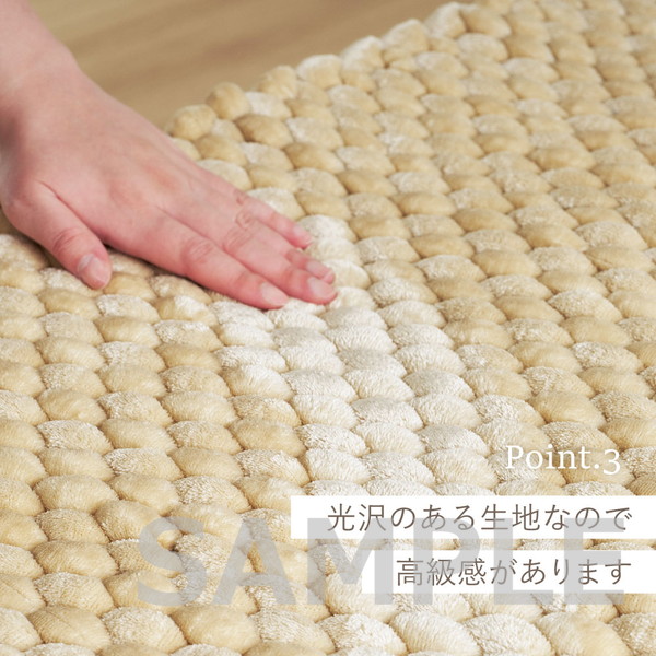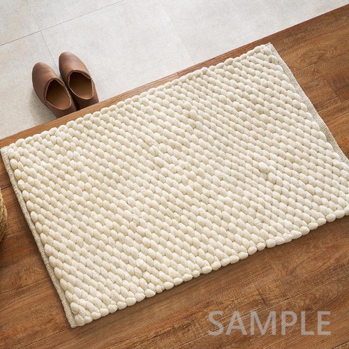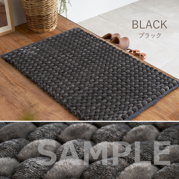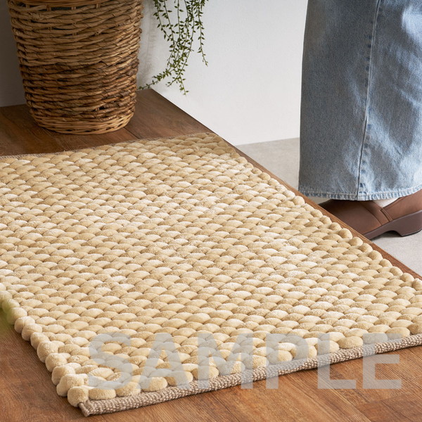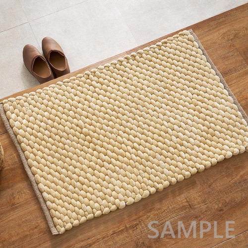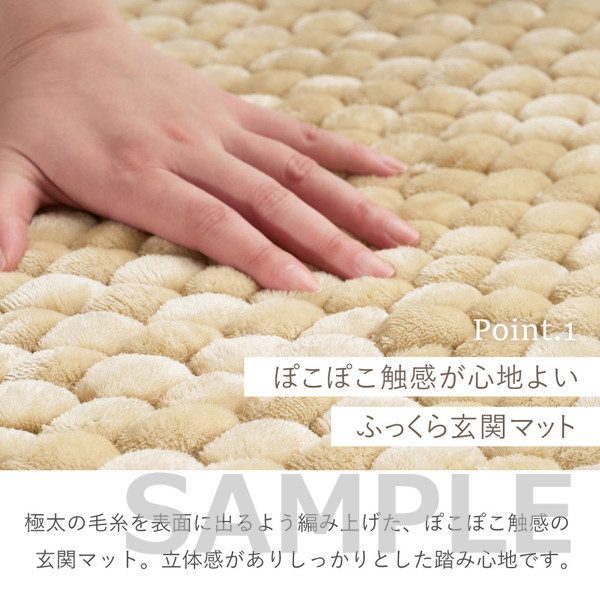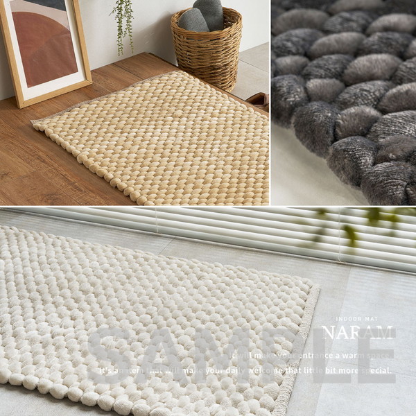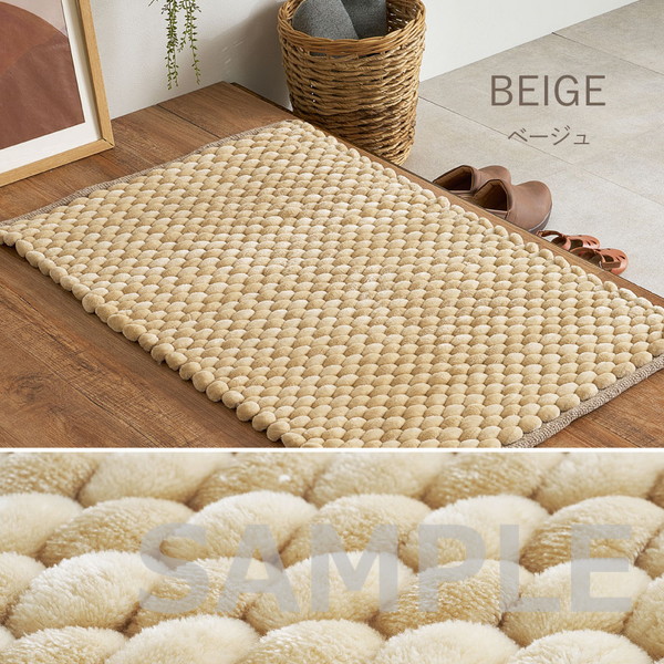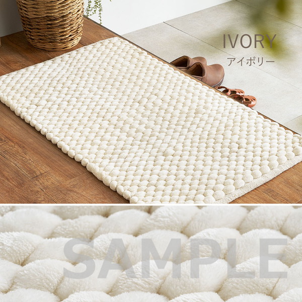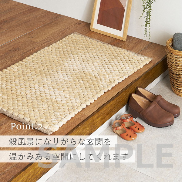 極太毛糸を立体的に編み上げた、ぽこぽことした触感が特徴の玄関マット。しっかりとした踏み心地で、毎日の出入りをやさしく支えます。ベロア調の光沢ある生地が空間に上品さをプラスし、シンプルながらも遊び心のあるデザインで玄関を温かみのある印象に整えます。