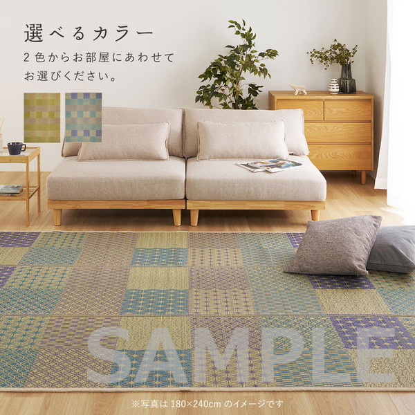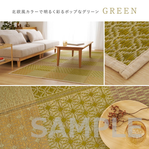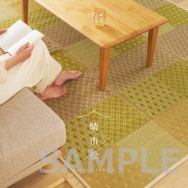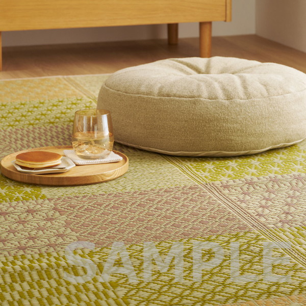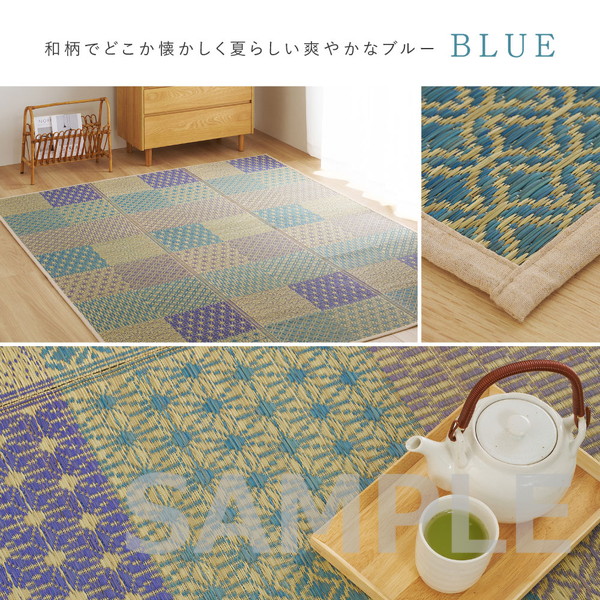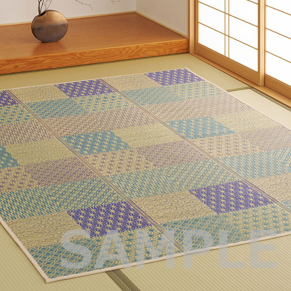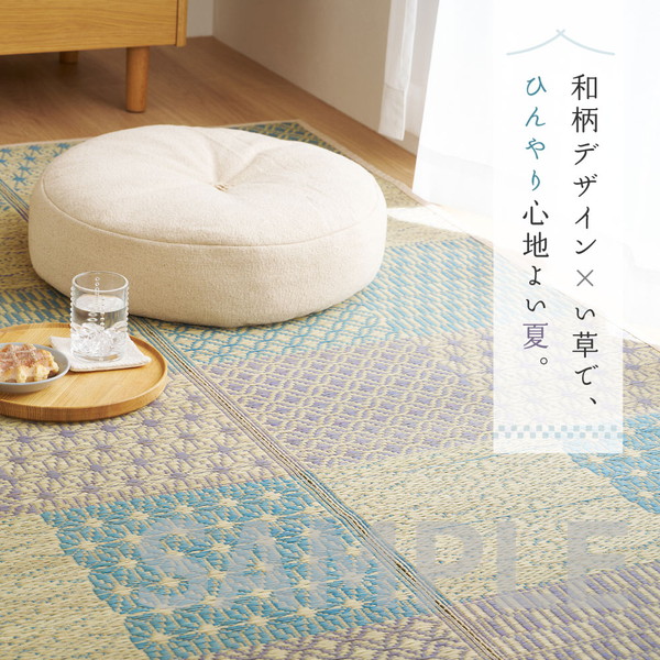伝統的な和柄に北欧風カラーを掛け合わせた、和モダンない草ラグ。