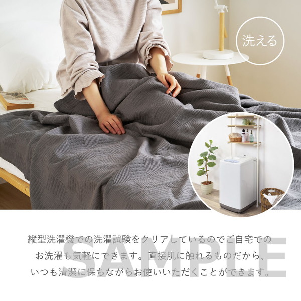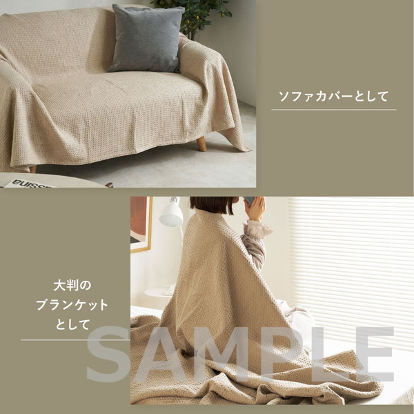 ベッドでは薄掛けとして、ソファではカバーとしても使えるサイズで、日常のさまざまなシーンに自然にフィット。洗濯機で洗えるため、いつでも清潔に保てるのも嬉しいポイントです。